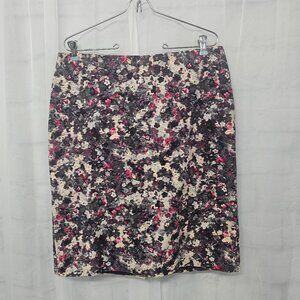 Red faux leather body with a multicolor floral embroidered print