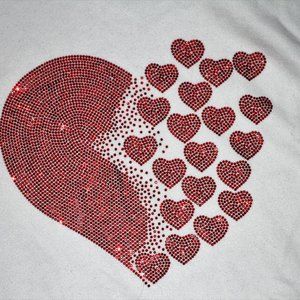 NWT Red Hearts Crystals On White Cropped Hoodie M