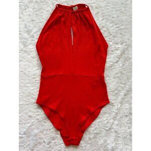 NWT Red High Neck Ribbed Bodysuit w/ Keyhole Cutout By H&M Conscious Size: 8