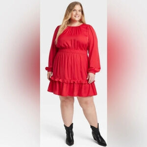 NWT Red Knox Rose Long Sleeve Satin Mini Dress Size Extra Extra Large XXL