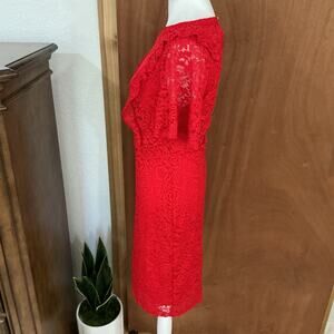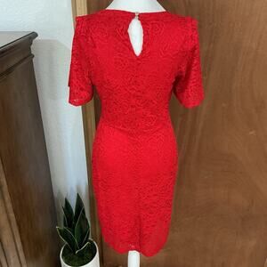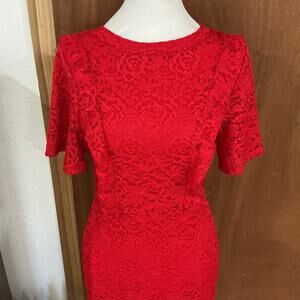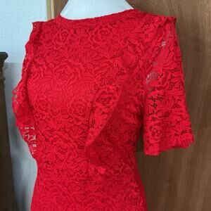 NWT Red Lace Overlay Stretch Bodycon Sheath Flutter Sleeve F&F Pinup Holiday