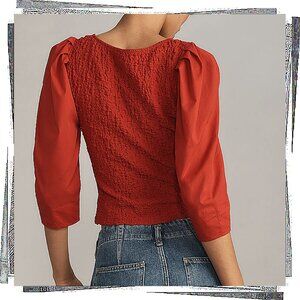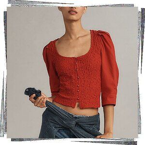 NWT: Red Lightweight Smocked Square Neck Button Front Cardigan (M)