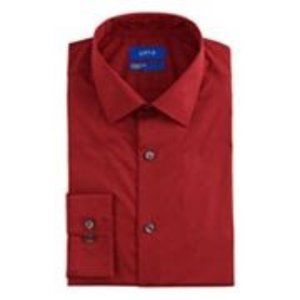 NWT Men's Apt. 9® Extra-Slim Fit Stretch Spread-Collar Wrinkle-Resistant Cotton and Spandex Dress Shirt..color is Sophisticated Red..Stretch fabric blend for comfortable movement...Spread collar flares to accommodate wider tie knots..Long sleeves..Button front..Wrinkle resistant..Slim fit features high arm holes, slightly narrow straight body and tapered sleeve opening..Machine wash..see measurements below.