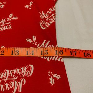 By Time and Tru. So soft & cute! Adorned with "Merry Christmas" and holly leaves and berries in white on a red background. Easy care Rayon, Cotton & Spandex blend. Fitted. Please see photos for details and measurements. All measurements are approximate. Color may slightly vary due to photographic lighting. Thanks for shopping my closet and please make offers!