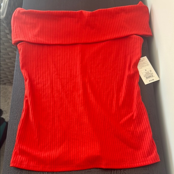 Stylish red off-shoulder ribbed top. Perfect for casual outings.