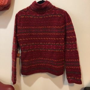 Wine Red/Burgandy Colored with accent colors of green and orange.