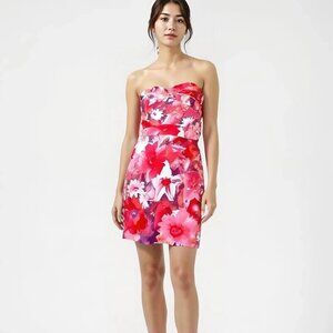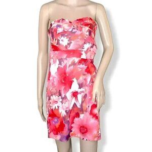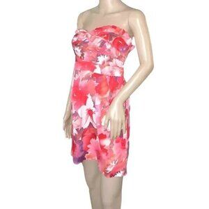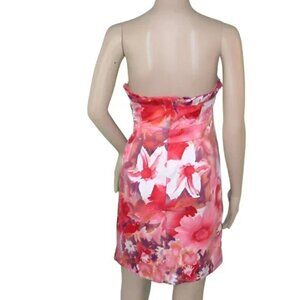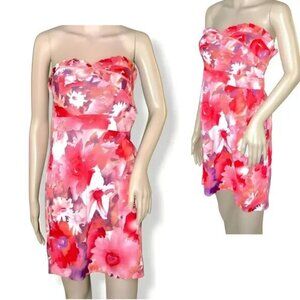 NWT Red Pink Purple Coral Sweetheart Tiered Hawaiian Floral Beach Sheath Dress M
