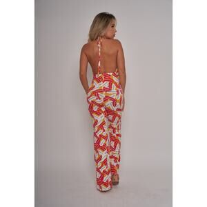 NWT Red Tropical Print Halter V Neck Jumpsuit - Large