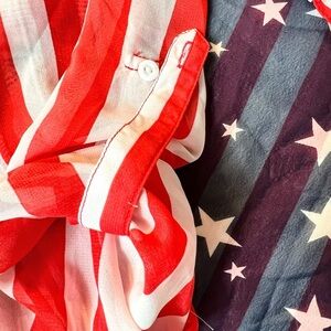 NWT Red, White & Blue Stars & Stripes Sheer Button Down Shirt Size Large