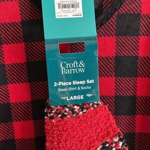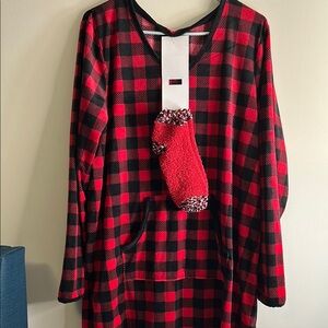 NWT Red and Black Plaid Long Sleeve Night Dress with Socks Croft & Barrow large