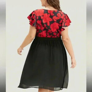 NWT! Red and black floral mesh belt it pocket knee dress size 26 or 4X