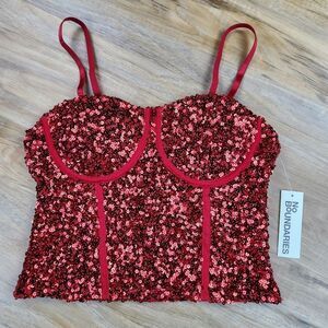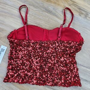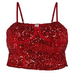 🩵NWT Red Sequined Fitted Corset Sleeveless Top Medium