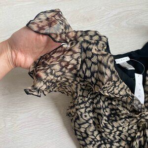 NWT Redux Y2K 100% Silk Flutter Sleeve Asymmetric Midi Dress Size 6 Forest Fairy