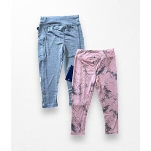 New with tags two pack of Reebok active leggings in size 4. Heather gray and powder pink/gray marble. The gray pair has pockets.