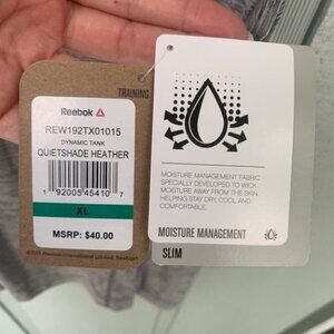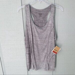 NEW WITH TAGS // Retail $40 // Reebok Dynamic Tank Singlet // women’s sz XL // Quiet Shade Heather (Gray) // poly/spandex // slim fit // Racerback design // moisture wicking // reflective details on back // perfect for crossfit, running, walking, yoga, and any other athletic sport!//