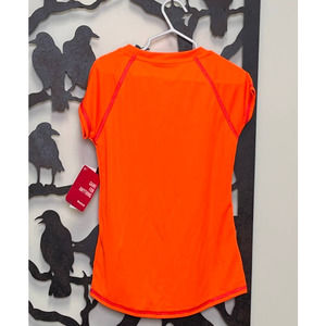 NWT Reebok PlayDry Neon Orange Active Top Sparkle Logo Small 7/8 FLAW