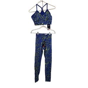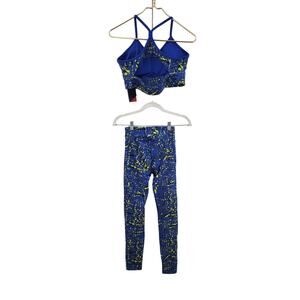 NWT Reebok Women's Originals Training Workout Ready Printed Leggings & Bra Set In Bright Cobalt