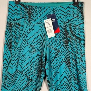 NWT Reebok XL Women's Legging 32x 27 in Yoga Green Blue w/Black Drawing $50