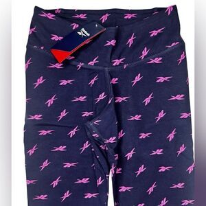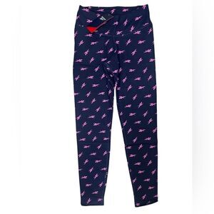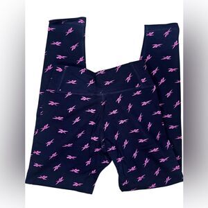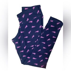 Stylish and comfortable navy leggings with a pink pattern. Perfect for workouts or casual wear.