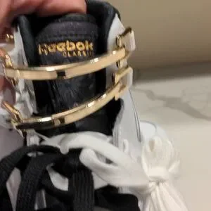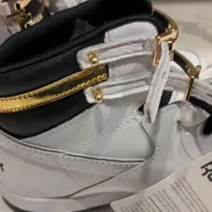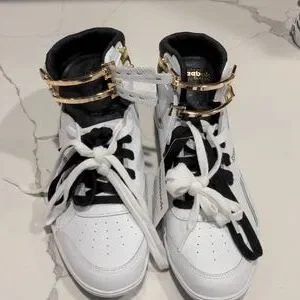 White and Black High tips with double laces and gold metal closures.