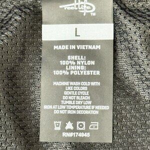 This Reel Life women's jacket is a great addition to your wardrobe. It features a mesh lined hood, making it perfect for windy days. The jacket is machine washable and comes in a stylish black color. The jacket is a basic style, but has some unique features like the hood and mesh fabric. It is a size L and fits regular size types.