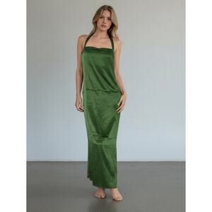 NWT Reformation Alli Green 100% Silk Halter Maxi Dress Size 12 Elegant Slip Gown