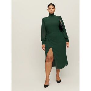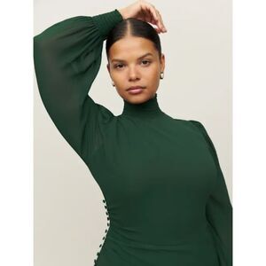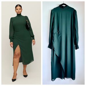 NWT Reformation Aude Long Sleeve Mock Neck Midi Dress in Forest Green Size 18
