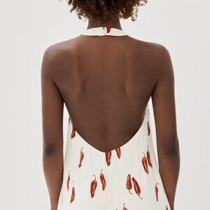 Features a relaxed, mini-length cut. Viscose-rayon fabric has a cool, lightweight feel and offers no stretch. An alternative bra works best with the open back. NWT.