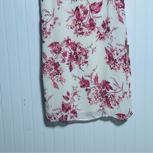 Elegant Reformation Slip women's dress featuring a beautiful pink floral pattern on a Beige background. Perfect for any occasion.