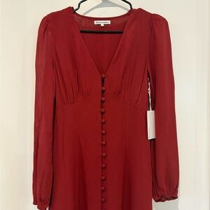 NWT Reformation Brogan Long Sleeve Button Front Midi Dress