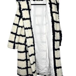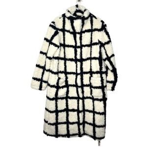 NWT Reformation Bromley Sherpa Coat, Black/White Windowpane Pattern, Size XL