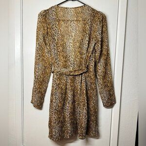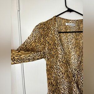 NWT Reformation Brooke Animal Instinct Leopard Wrap Puff Long Sleeve Dress XS