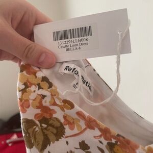 Casette dress by Reformation in Bella. 100% Linen. New with tags and never worn. Size 8.