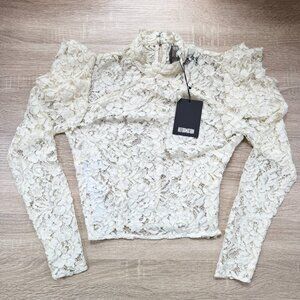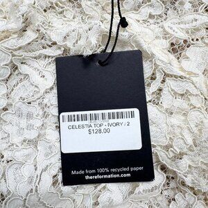 NWT Reformation Celestia Top Lace Long Sleeve Shirt Blouse Mock Ivory Cream