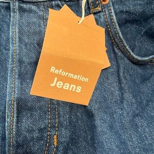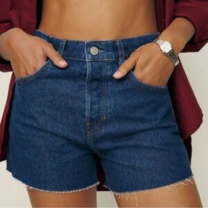 NWT Reformation Charlene High Rise Cutoff Denim Jean Shorts Cesme Dark Blue