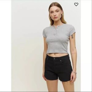 NWT Reformation Charlie High Rise Jean Shorts Black Cut Off Frayed Hem Denim 31