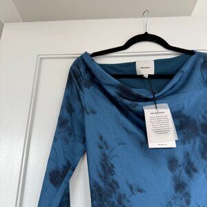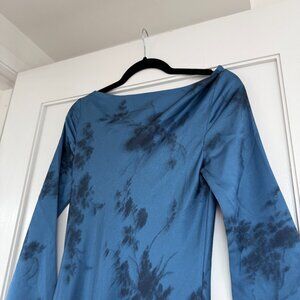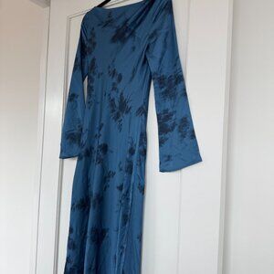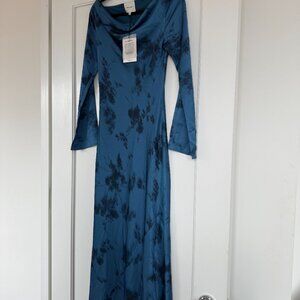 Reformation Ciana Satin Maxi Dress Sz 4 In Fantasy Blue Floral Long Sleeves Cowl Neck