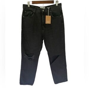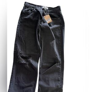 NWT Reformation Cynthia High Rise Distressed Black Straight Leg Jeans Size 31. Organically grown cotton. Button fly. MSRP$168.