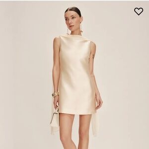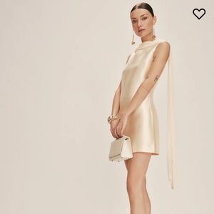 Wear the dress. Shop the Ecru Dress from Reformation, a sleeveless mini dress with a high boat neckline, open back, and attached scarf detailing.