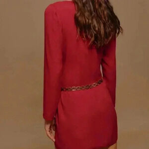 NWT Reformation Eleny Longsleeve Red Side Slit Square Neckline Mini Dress 12