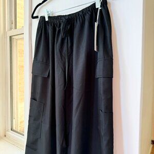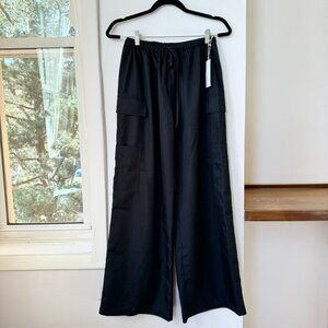 NWT Reformation Ethan Twill Pant Wide Leg Trousers Cargo Drawstring in Black