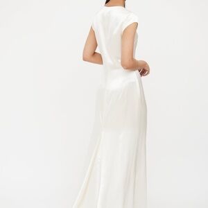 Sleek and timeless, the Reformation Genna Dress in ivory is crafted from luxurious silk with a clean V-neckline, cap sleeves, and a flowing floor-length silhouette. Elegant in its simplicity, it’s a perfect choice for bridal events, formal occasions, or minimalist evening wear. The subtle sheen of the silk adds a refined touch, while the tailored fit offers a flattering, elongating effect.