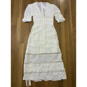 NWT Reformation Ginny Dress Ivory Midi Lace V Neck Button Up Size 0 P Petite
