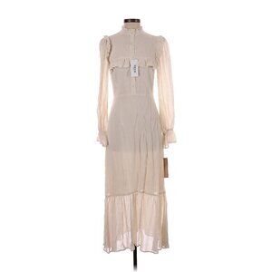 NWT Reformation Hallie in Cream Long Sleeve Ruffle Trim Midi Dress 4 $278