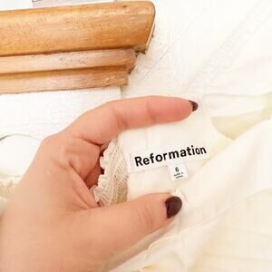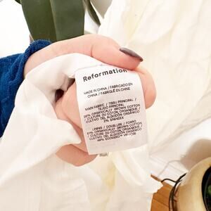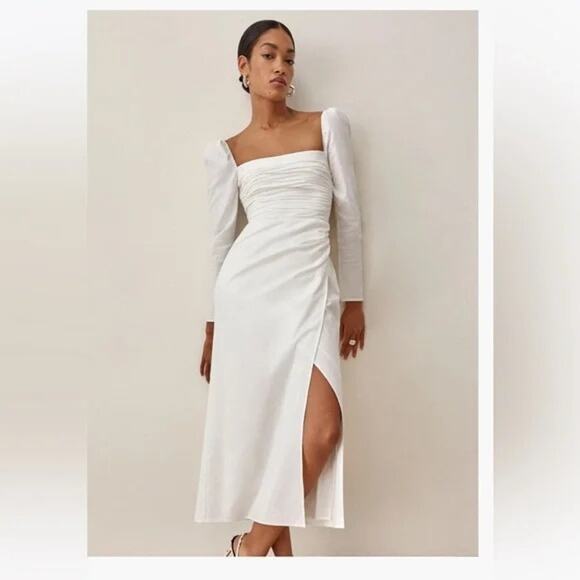 NWT Reformation Isaac Dress White Ruched Long Sleeve Side Slit Midi Size 6