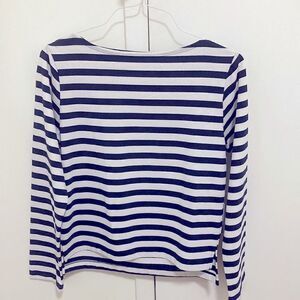 NWT Reformation Jeans navy & white nautical stripe long sleeve cotton blend top with boat neck and side slits. Made in USA.