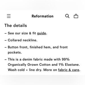 NWT Reformation Kent Denim Mini Dress in Rockaway Blue Size 6