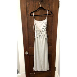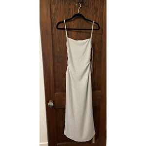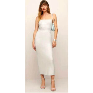 NWT! Reformation L Breslin Stretch Silver Metallic Knit Midi Dress Low Back
