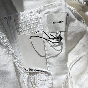NWT Reformation Malvina Linen Puff-Sleeve Mini Dress White 10
