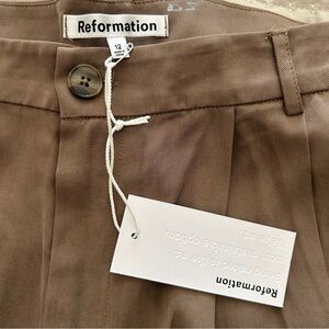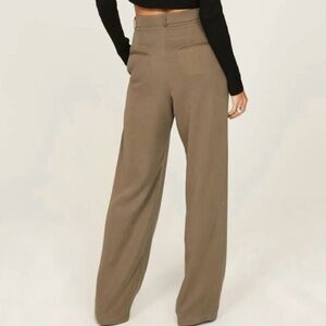 NWT, Reformation Mason Pleated Pants High Rise Relaxed Wide Leg Mushroom Size 12